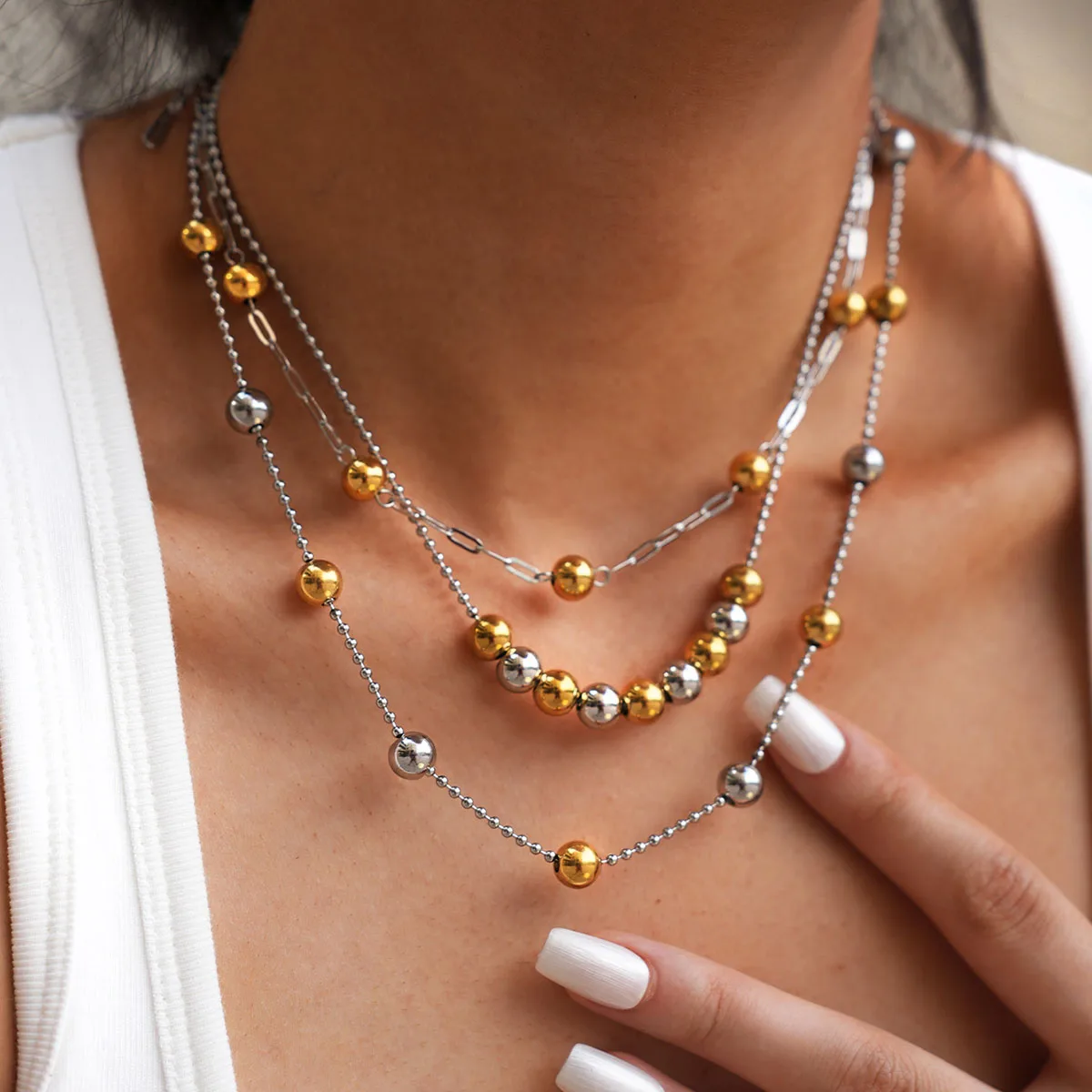 Created for modern women, this delicate gold bead necklace highlights your neckline—solving the need for jewelry that feels elegant, lightweight, and effortlessly party-ready.